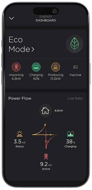 Our platform scales to fit any site, from single-family homes to large, complex installations. Reduce peak utility costs, keep stored power flowing where it matters most during grid outages, and optimize overall energy usage — helping create a smarter, more resilient, and more sustainable future.